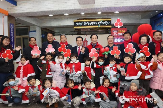 한국시사경제 오영주 기자 | 충북 진천군은 5일 진천군청 중앙현관에서 충북사회복지공동모금회와 함께 ‘희망2026나눔캠페인’ 사랑의 온도탑 제막식과 현장순회모금 행사를 개최했다.