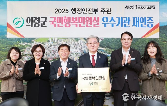 한국시사경제 윤광희 기자 | 의령군이 행정안전부가 주관하는 ‘국민행복민원실’ 재인증 평가에서 우수기관으로 선정됐다. 인증 기간은 2025년 12월 1일부터 2028년 12월 31일까지 3년간이다.
