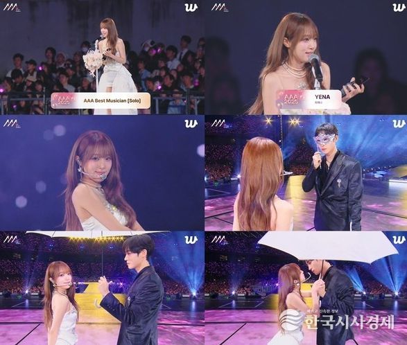 한국시사경제 연예팀 | 가수 최예나(YENA)가 'AAA' 베스트 뮤지션 상을 수상, 추영우와 설렘 퍼포먼스로 존재감을 드러냈다.