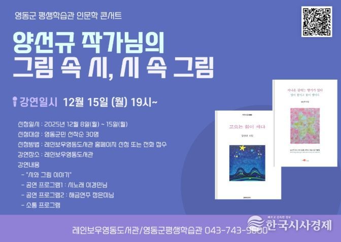 한국시사경제 충북취재본부 | 충북 영동군은 지역 출신 작가의 시와 그림을 통해 군민들에게 회복과 위로의 메시지를 전하고, 독서 문화 확산을 위한 인문학 북콘서트를 개최한다.