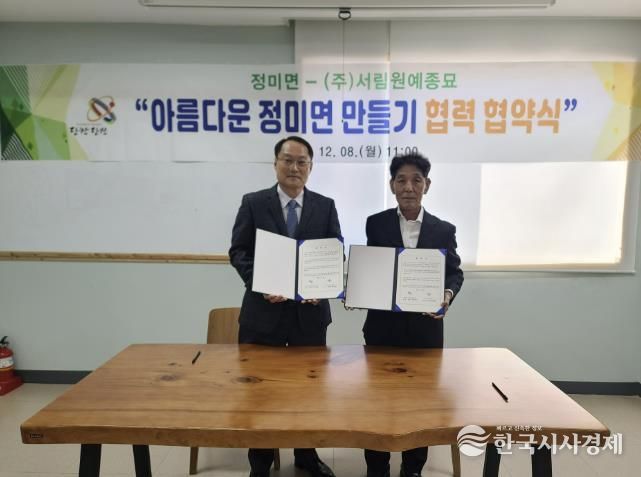 한국시사경제 충남취재본부 | 정미면 행정복지센터는 지난 8일 지역 미관 개선과 쾌적한 생활환경 조성을 위해 ㈜서림원예종묘와 아름다운 정미면 만들기 협력 협약을 체결했다고 9일 밝혔다.