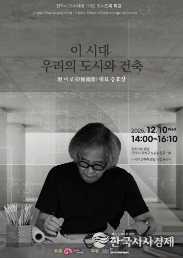 전주시 관계자는 “승효상 건축가는 ‘터무니’, 즉 땅의 자취와 성질을 존중하는 철학으로 전주 도시재생의 방향성과 깊이 맞닿아 있다”면서 “이번 강연을 통해 도시의 본질과 미래를 다시 사유하는 계기가 되길 바란다”고 말했다.