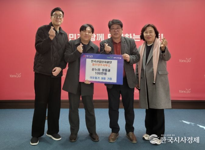 한국시사경제 경기북부취재본부 | 한국산업단지공단 파주양주사무소가 지난 8일 백석읍 취약계층을 지원하기 위해 온누리상품권 100만 원을 기부했다. 지난해 겨울에 이어 올해도 백석읍을 찾아 꾸준한 나눔을 이어가며 지역사회에 따뜻한 메시지를 전했다.