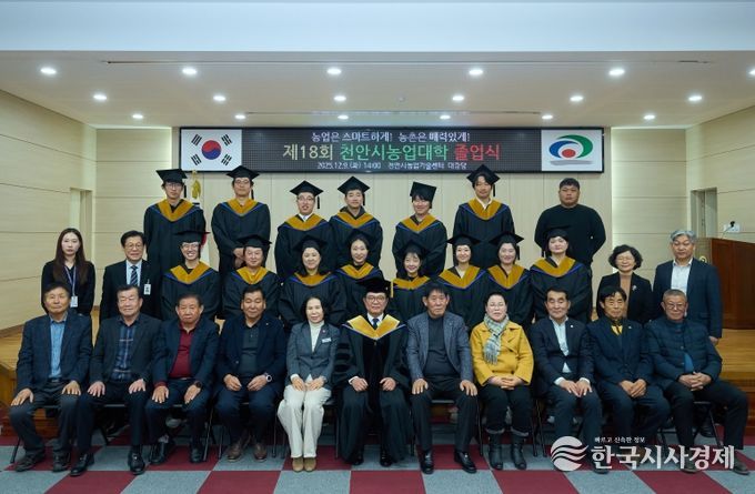 올해 천안시농업대학은 포도수출과 청년창업농 2개 과정을 운영했으며, 46명의 졸업생이 전문농업경영인 육성을 위한 교육을 수료했다.