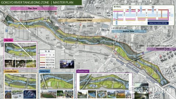 하천을 단순한 치수 중심에서 벗어나 시민의 여가와 생활 체육, 자연 생태가 어우러진 복합 문화 공간으로 확장하기 위해 대상지를 네 가지 주제(테마)로 구성했다. 각 공간은 ▲놀이공간(Play Zone) ▲소통공간(Community Zone) ▲활동공간(Active Zone) ▲화합공간(Harmony Zone)으로 구분된다.