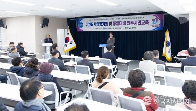 한국시사경제 충남취재본부 | 한국자유총연맹 충남 청양군지회가 지난 9일 청양군 다목적회관에서 2025년 사업평가회와 통일 대비 민주시민교육을 끝으로 한해 사업을 마무리했다.