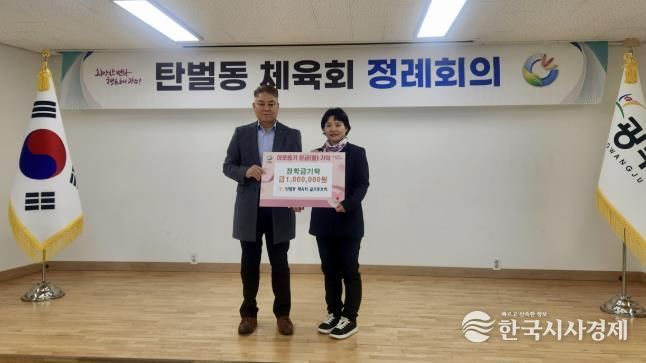 한국시사경제 기동취재팀 | 광주시 탄벌동 체육회 골프동호회는 지난 10일 탄벌동 행정복지센터에 저소득 청소년 지원을 위한 장학금 100만 원을 기탁했다.
