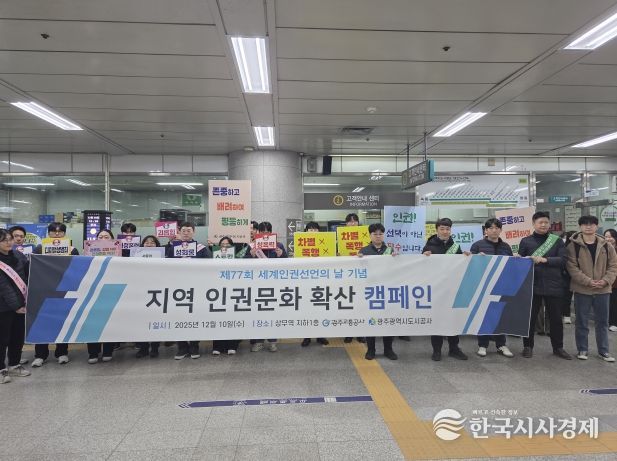 한국시사경제 광주취재본부 | 광주교통공사가 10일 서구 상무역에서 제77주년 세계인권 선언기념일(인권의 날)을 맞아 존중과 배려의 인권 문화 확산을 위한 대시민 홍보 캠페인을 펼쳤다.