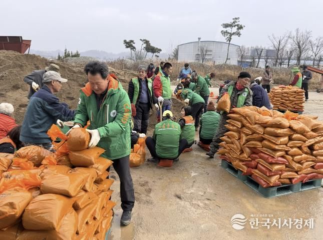 문경시 자율방재단, 폭설 대비 모래주머니 제작