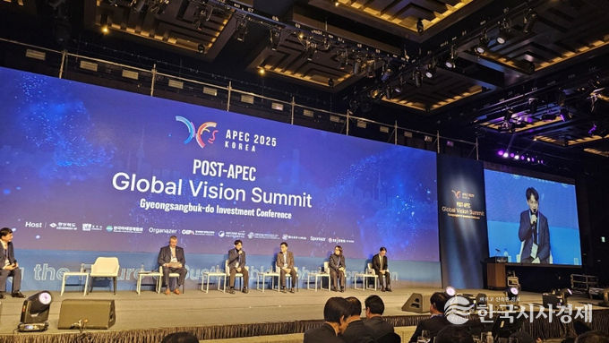 한국시사경제 경제팀 | 27일 개막한 'Post-APEC Global Vision Summit'에는 국내외 기업인과 외교 관계자를 포함한 700여 명이 참석했다. 회의는 AI, 바이오, 공급망, K-컬처를 주요 의제로 다루며, 포스트 APEC 시대 국제 협력의 중요성을 강조했다. 경북 22개 지자체장은 투자 확대와 글로벌 연계를 강화하겠다는 의지를 담은 '포스트 APEC 비전 선언'을 발표했다.