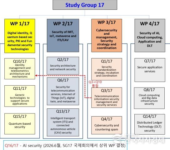 한편, 정보보호연구반이 인공지능 자체 보안, 생성형 AI 모델, 딥페이크 탐지 및 파인튜닝 보안 등 전반적인 인공지능 보안 기술을 전담할 연구과제(Question 16)의 잠정 신설에 합의함에 따라, 우리나라는 에이전틱 및 피지컬 AI 보안 등 신흥 분야까지 연구 범위를 확대하여 새로운 리더십 확보를 목표로 적극 참여할 예정이다. 해당 연구과제는 2026년 1월 표준화자문그룹(TSAG) 국제회의에서 심의될 예정이고, 2026년 6월경 차기 SG17 국제회의에서 최종 승인될 예정이다.