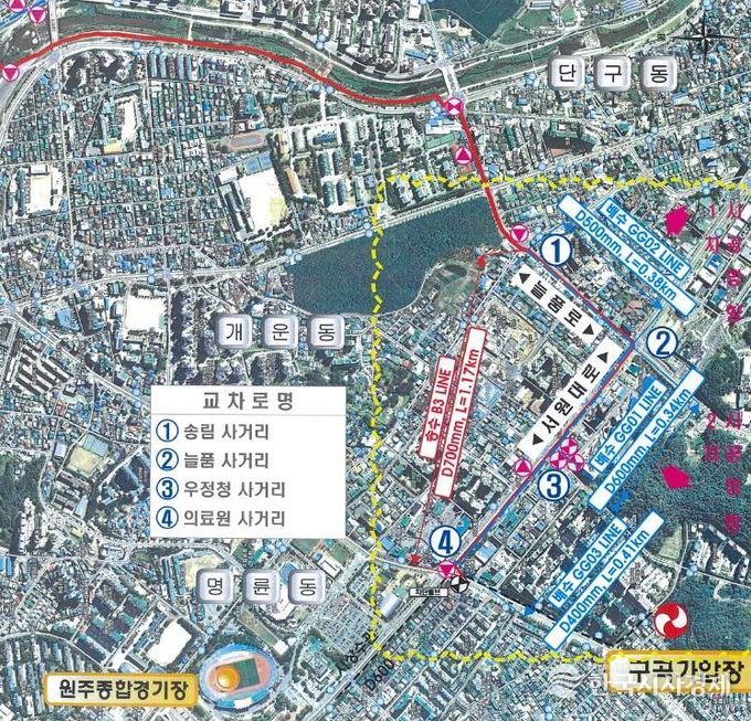 한국시사경제 권충언 기자 | 원주시상하수도사업소는 태장배수지 설치사업의 일환으로 진행 중인 ‘송림사거리-늘품사거리-우정청사거리 구간 송배수관로 설치공사’를 마무리하고, 오는 19일까지 도로 임시 포장을 마칠 예정이다.