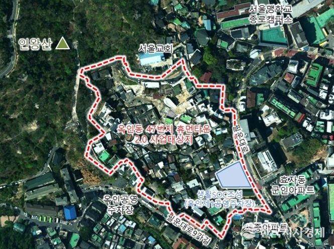 옥인동 47번지 일대(30,282.5㎡)는 2019년 7월 주거환경개선구역으로 지정됐다. 역사문화자원이 풍부하지만, 불법주정차 · 소방차 진입 불가 · 체육시설 부족 등 생활기반시설이 낙후돼 있었다.