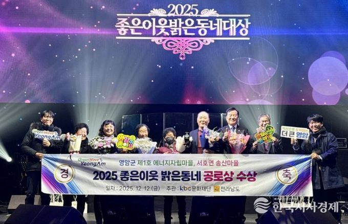 한국시사경제 권충현 기자 | 영암군 송산마을이 12일 광주광역시 조선대학교 해오름관에서 열린 ‘2025 좋은이웃 밝은동네’ 시상식에서 공로상을 받았다.