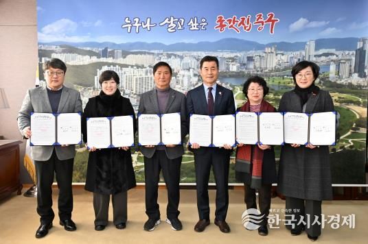 한국시사경제 울산취재본부 | 울산 중구와 사회복지법인 함께하는사람들, 울산중구시니어클럽, 대한노인회 울산중구지회, 중구노인복지관, 함월노인복지관이 12월 15일 오전 11시 40분 중구청 구청장실에서 ‘2026년도 노인일자리 및 사회활동 지원사업’ 운영을 위한 위수탁 계약을 체결했다.