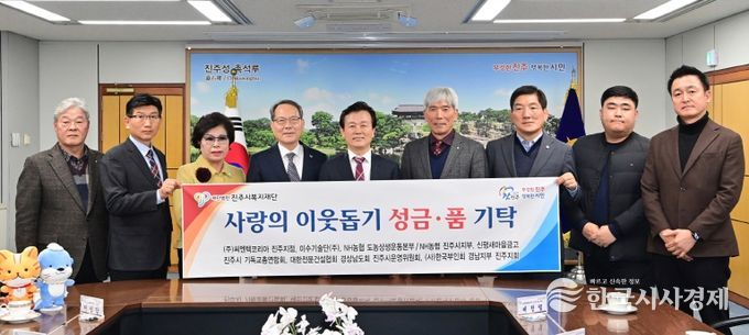 한국시사경제 윤광희 기자 | 진주시복지재단(이사장 이성갑)은 15일 진주시청 기업인의 방에서 지역사회 기업 ·기관·단체의 어려운 이웃돕기 성금품 기탁식을 가졌다.
