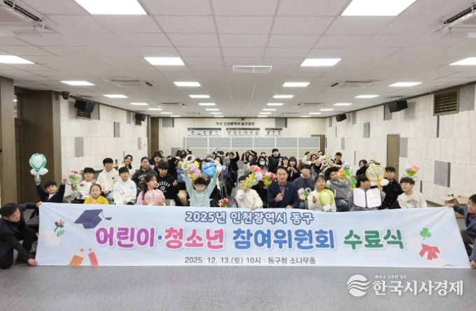 한국시사경제 윤광희 기자 | 인천 동구는 지난 13일 구청 소나무홀에서 ‘2025년 어린이·청소년 참여위원회’ 수료식을 개최했다고 밝혔다.