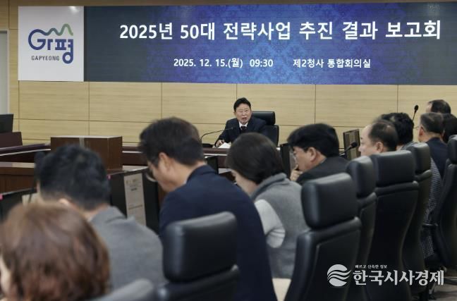 한국시사경제 경기북부취재본부 | 가평군은 15일 ‘2025년 50대 전략사업 추진 결과 보고회’를 열고, 올해 추진한 주요 현안과 역점·공략사업의 성과를 종합적으로 점검했다.