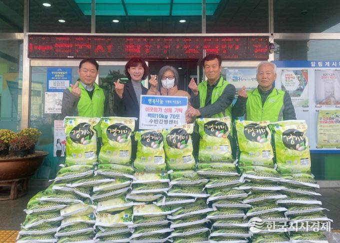 한국시사경제 사회팀 | 경기도 고양시에 있는 수빈간병센터가 지난 11일 평택시 청북읍 행정복지센터에 백미(10㎏) 70포를 기부했다.