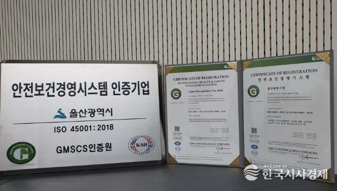 한국시사경제 울산취재본부 | 울산시는 국제표준화기구(ISO)로부터 ‘안전보건경영시스템(ISO 45001)’ 국제인증을 취득했다고 밝혔다.