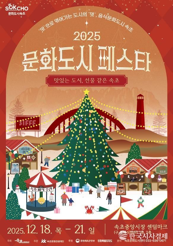 한국시사경제 이정이 기자 | (재)속초문화관광재단은 속초시의 대한민국 문화도시 1년 차 사업을 마무리하며 오는 12월 18일부터 21일까지 4일간 속초중앙시장 센텀마크(구 롯데시네마) 에서 대한민국 문화도시 성과공유회‘2025 문화도시 페스타’를 개최한다.