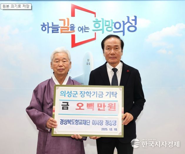 김주수 의성군수는 “고향에 대한 깊은 애정과 뜻깊은 나눔을 실천해 주신 정상영 이사장님께 진심으로 감사드린다”며 “기탁해 주신 장학금은 지역 학생들이 꿈을 키우고 훌륭한 미래의 주인공으로 성장할 수 있도록 학업 지원과 인재 육성을 위해 소중히 사용하겠다”고 말했다.