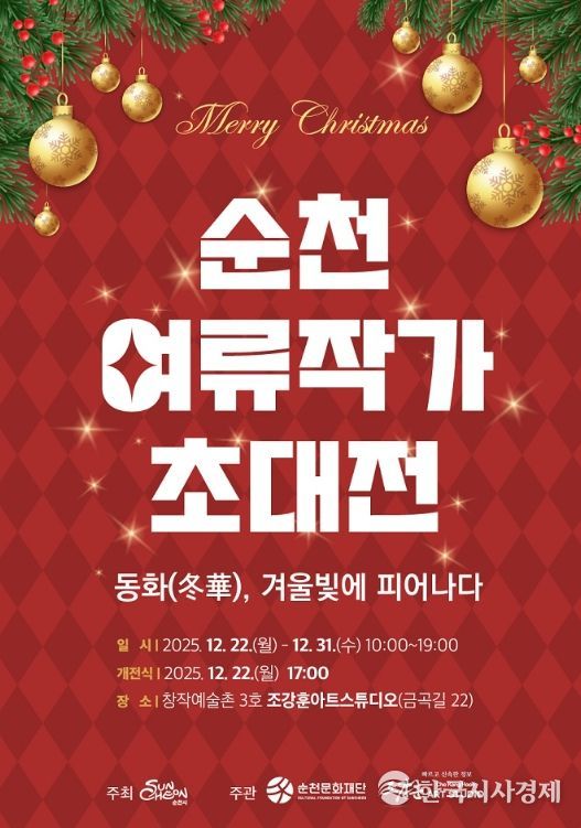 한국시사경제 전남취재본부 | 순천문화재단은 오는 22일 오후 5시 개전식을 시작으로 31일까지 순천창작예술촌 3호 조강훈 아트 스튜디오 1층 전시관에서 순천 여류작가 초대전 「동화(冬華), 겨울빛에 피어나다」를 진행한다.