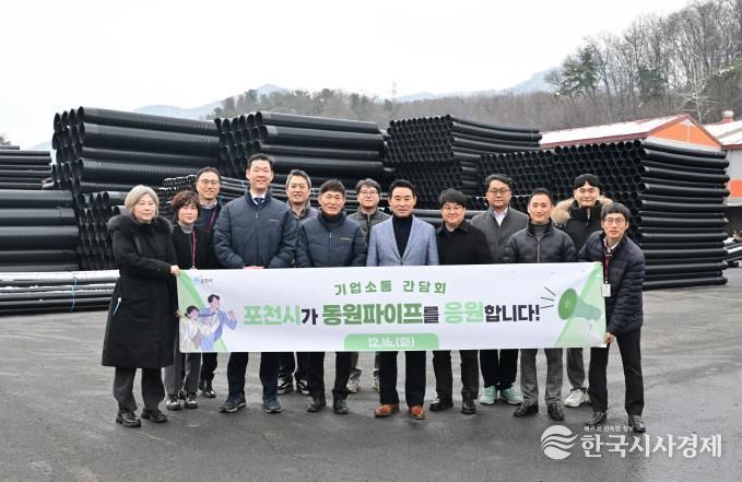 한국시사경제 경기북부취재본부 | 포천시는 지난 16일 기업 경영 애로를 청취하고 현장의 의견을 수렴하기 위해 신북면에 위치한 동원파이프를 방문했다.