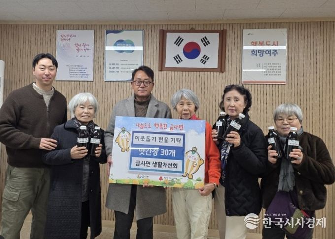 여주시농업기술센터의 농업인 학습단체 육성지원 사업의 일환으로 열린 이날 행사에서 회원들이 직접 만든 맛간장 30개를 금사면 행정복지센터에 이웃돕기 물품으로 기탁하며 나눔을 실천했다.