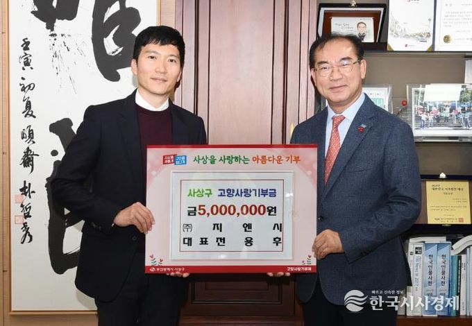 사상구는 지난 12월 16일, ㈜지엔시 전용후 대표가 고향사랑기부금 500만 원을 기탁했다고 밝혔다.