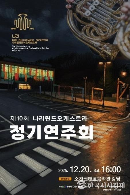 나리윈드오케스트라는 안동 지역 시민으로 구성된 관악오케스트라로, 클래식부터 대중음악까지 폭넓은 레퍼토리를 통해 지역 문화예술 저변 확대에 꾸준히 기여해 오고 있다. 이번 공연은 한 해 동안의 활동을 정리하고 시민과 음악으로 소통하는 뜻깊은 무대가 될 것으로 기대된다.