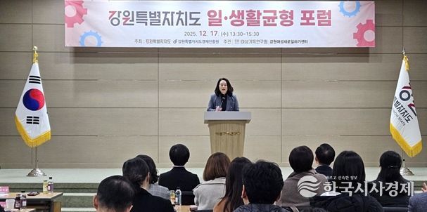 한국시사경제 권충언 기자 | 강원특별자치도는 12월 17일 강원특별자치도와 강원특별자치도경제진흥원이 공동 주최하고, 강원특별자치도여성가족연구원과 강원여성새로일하기센터가 주관하여 강원특별자치도여성가족연구원 1층 강당에서 '강원특별자치도 일·생활균형 포럼'을 개최했다.