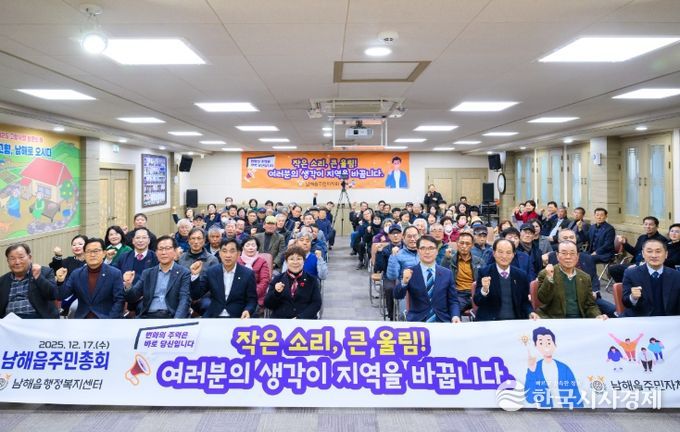 한국시사경제 경남취재본부 | 남해읍 주민자치회(회장 하희택)는 17일 오후 2시, 남해읍행정복지센터 2층 회의실에서 주민과 함께하는 2025년 남해읍 주민총회를 개최했다.