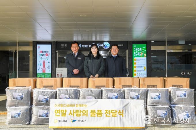 한국시사경제 김태훈 기자 | 부여군은 지난 18일, (사)월드쉐어(대표 최순자)가 관내 드림스타트 가족 80가구에 겨울용 이불 80개를 전달 했다고 밝혔다.