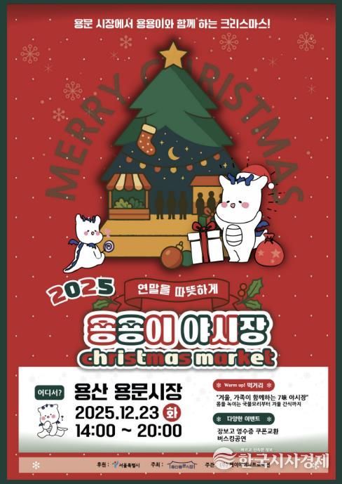 한국시사경제 권충언 기자 | 서울 용산구가 오는 23일 용산용문시장 상인들 주최로 열리는 ‘2025 용용이 야시장 엑스마스(X-MAS)’ 행사를 지원한다.
