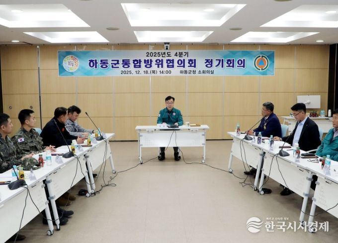 한국시사경제 경남취재본부 | 하동군은 지난 18일 군청 소회의실에서 통합방위협의회 4분기 정기회의를 열어 국내외 안보 정세를 점검하고, 지역방위 체계 강화를 위한 협력 방안을 논의했다고 밝혔다.