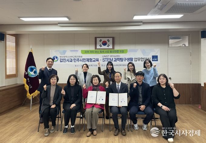 한국시사경제 부산취재본부 | 부산광역시서부교육지원청은 18일 오전 서부교육지원청에서 울산과학기술원(UNIST) 리더십센터(센터장 최영도)와 과학·기술 관련 지역 격차 해소 사업 활성화를 위한 업무협약을 체결했다.