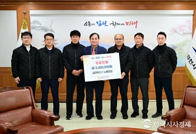 한국시사경제 권충언 기자 | 김천버스노동조합(조합장 남한수)은 12월 18일 김천시청을 방문해 지역 사랑 실천을 위한 불우이웃돕기 성금 300만 원을 전달하며 따뜻한 마음을 보탰다.