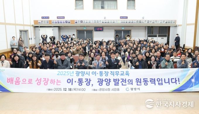 한국시사경제 권충언 기자 | 광양시는 지난 18일 시청 시민홀에서 12개 읍·면·동 이·통장 200여 명을 대상으로 2025년 이·통장 직무교육을 실시했다.