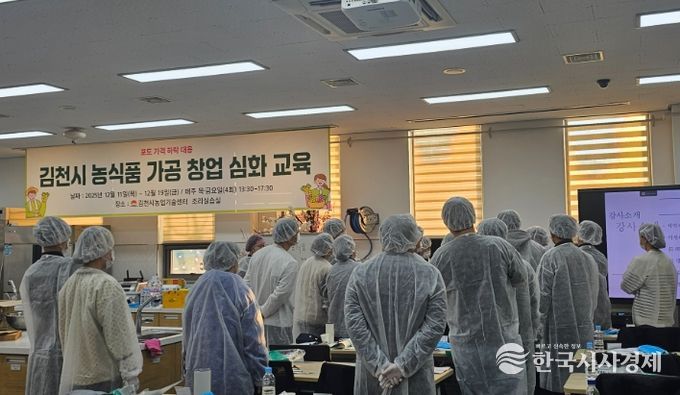 한국시사경제 경제팀 | 김천시는 12월 19일 오후, 김천시농업기술센터 농촌생활교육관 조리실습실에서 ‘2025년 김천시 농식품 가공 창업 심화 교육’ 수료식을 성황리에 개최했다.