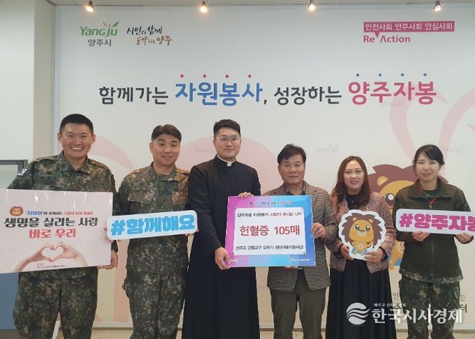 한국시사경제 경기북부취재본부 | 양주시자원봉사센터는 천주교 군종교구 오뚜기 성당(제8기동사단) 오형훈 군종신부와 군 장병들이 연말을 맞아 헌혈증 105장을 기부했다고 밝혔다.