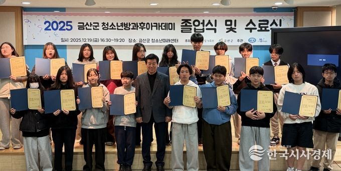 한국시사경제 김태훈 기자 | 금산군은 지난 19일 금산군청소년미래센터에서 2025년 청소년방과후아카데미 졸업 및 수료식을 개최했다.