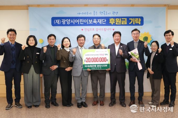 시 관계자는 “오랜 기간 한결같은 마음으로 지역 아이들을 위해 따뜻한 나눔을 실천해 주신 NH농협 광양시지부에 진심으로 감사드린다”며 “이번 기부는 단순한 후원을 넘어 아이 키우기 좋은 광양을 함께 만들어 가겠다는 지역사회의 굳은 약속이자 큰 응원”이라고 강조했다. 이어 “오늘 전달된 소중한 후원금은 아이들의 건강한 성장과 부모님들의 든든한 버팀목이 될 것”이라며 “광양시는 앞으로도 재단과 함께 아이 한 명, 한 명이 소중히 자라날 수 있는 아이 키우기 좋은 도시, 부모가 안심할 수 있는 도시를 만들기 위해 최선을 다하겠다”고 말했다.
