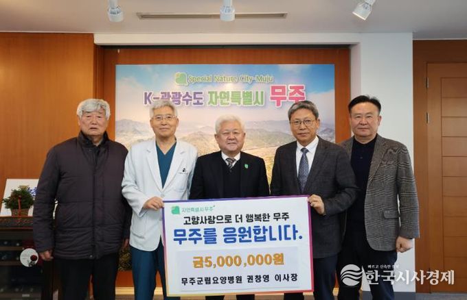 한국시사경제 김숙영 기자 | 무주군으로부터 무주군립요양병원을 위탁받아 운영하는 (사)소산 권창영 이사장이 고향사랑기부금 5백만 원을 기탁했다. 이날 기탁식에는 권도훈 무주군립요양병원장과 임원진 등 4명이 함께 해 의미를 더했다.