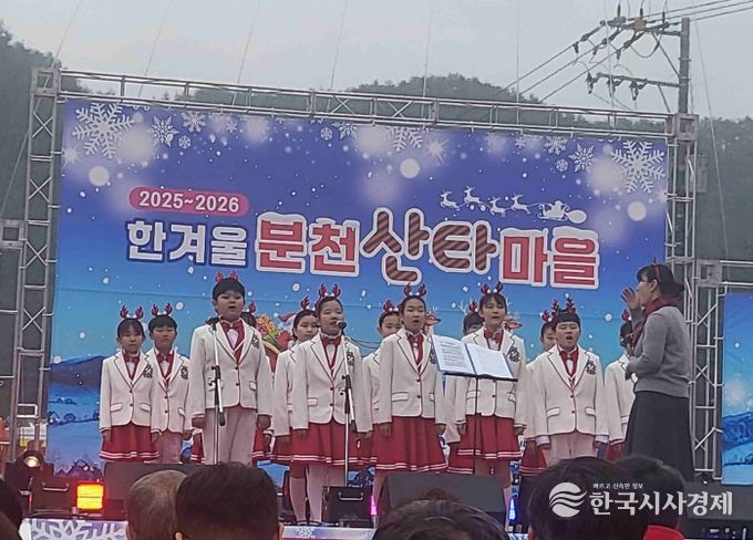 한국시사경제 문화팀 | 봉화군 소천면 분천산타마을에서 지난 20일(토) 개최된 ‘2025 한겨울 분천산타마을 개장식’ 이 지역주민과 관광객들의 열띤 호응 속에 성황리에 열렸다. 이번 개장 축하공연에는 봉화교육지원청이 운영하는 봉꽃송이 청소년 합창단이 참여하여 한겨울 추위를 녹이는 따뜻한 무대를 선사했다.