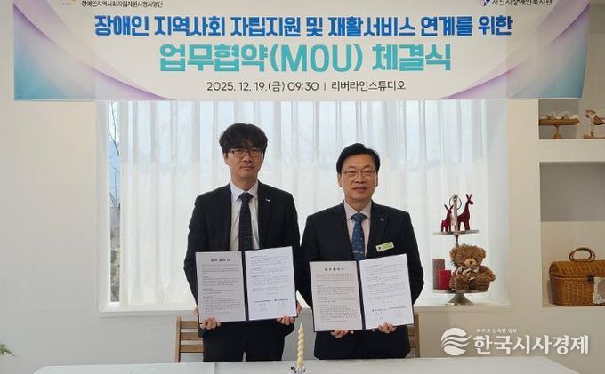 한국시사경제 문화팀 | 서산시장애인지역사회자립지원시범사업단과 서산시장애인복지관은 2025년 12월 19일, 서산시에 거주하는 장애인의 안정적인 지역사회 정착과 복지 향상을 위해 업무협약(MOU)을 체결했다.