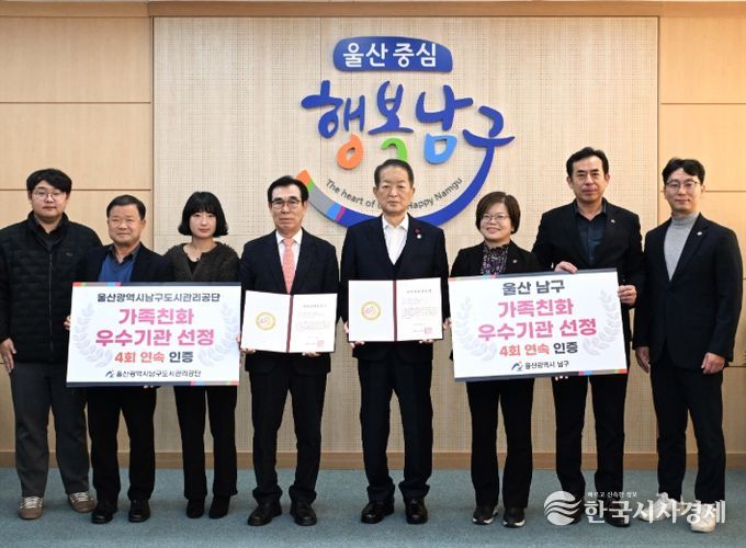 한국시사경제 울산취재본부 | 울산 남구는 성평등가족부가 주관하는 ‘2025년 가족친화 인증’ 재인증 기관으로 선정돼 4회 연속 가족친화 인증을 획득했다고 19일 밝혔다.