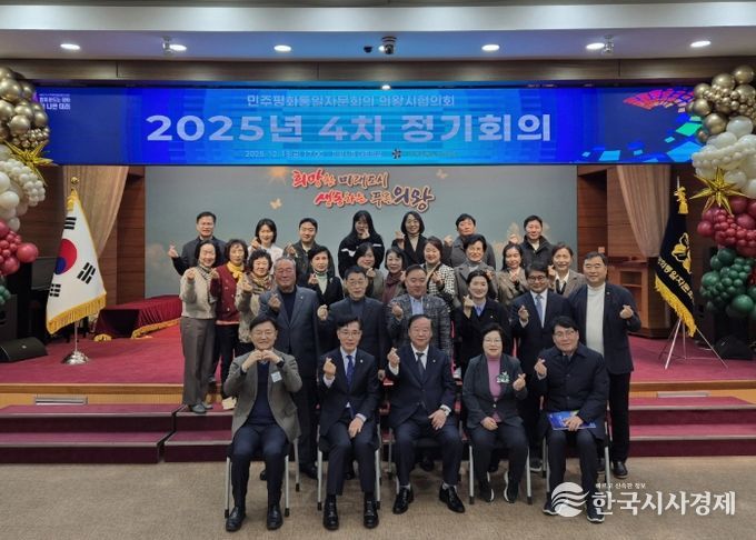 한국시사경제 권충현 기자 | 민주평화통일자문회의 의왕시협의회가 12월 19일 시청 대회의실에서 자문위원 등 45명이 참석한 가운데‘화해·협력의 남북관계 재정립을 위한 정책방향’을 주제로‘2025년 4차 정기회의’를 개최했다.