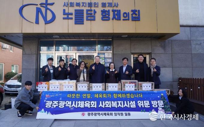 한국시사경제 광주취재본부 | 광주광역시체육회가 지난 18일 오전 아동양육시설인 노틀담 형제의 집을 방문해 위문품을 전달했다고 밝혔다.
