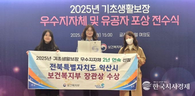 익산시는 22일 보건복지부 주관 '2025년 기초생활보장 평가'에서 지난해에 이어 2년 연속 우수지자체로 선정됐다.